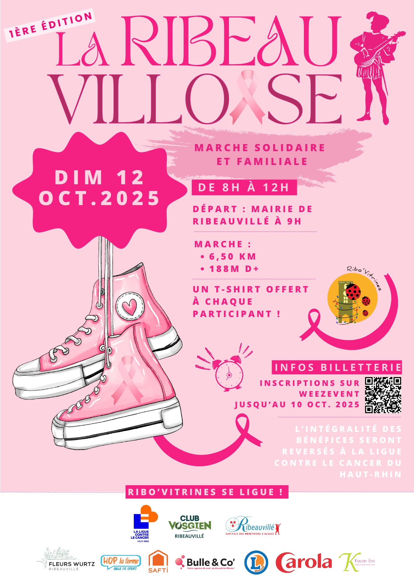 Rejoignez notre première édition de la Ribeauvilloise le 12 octobre 2025, en partenariat avec la ligue contre le cancer du Haut Rhin.
